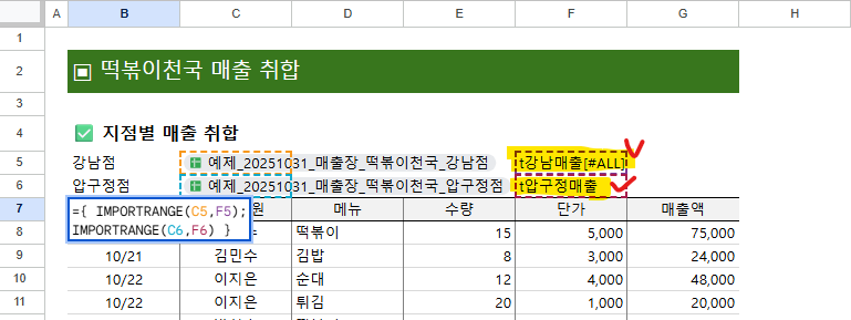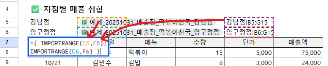 → 강남점과 압구정점 매출을 “취합”이라는 파일로 통합한다.
