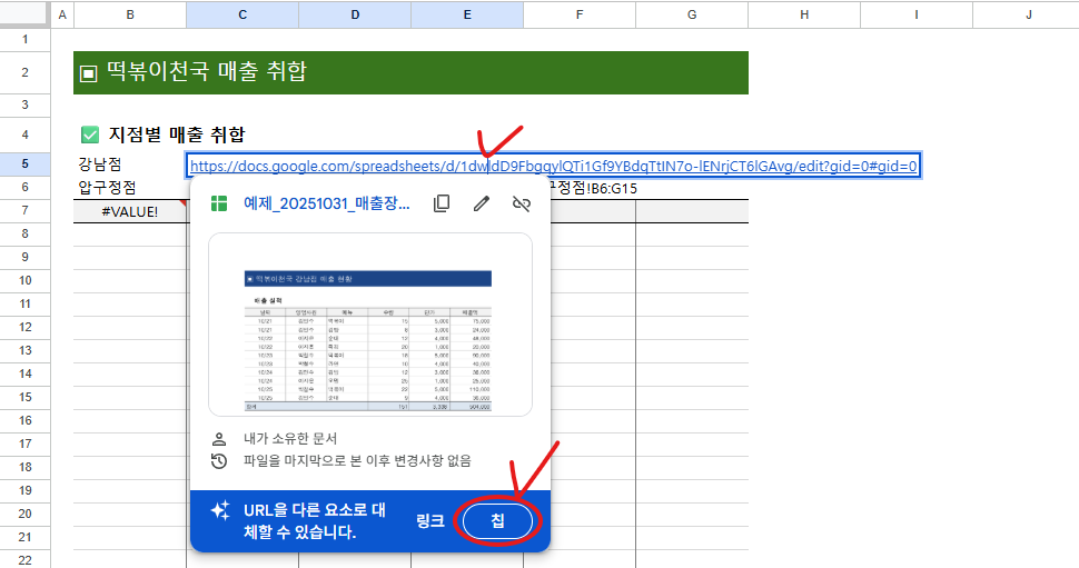 1️⃣ 구글 시트 URL대신 칩을 사용해도 된다.